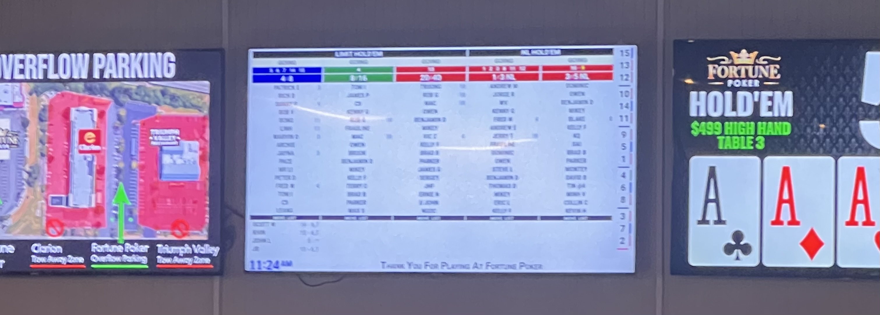 As a result of my return to glory in the 3/5 streets, I cut back my volume in 20/40 limit and started playing more at Aces. The 3/5 games in Lakewood got a bit stronger after Palace moved to a new building and became Aces, plus the 20/40 game at Fortune actually seems to be drying up a bit. It used to be very common to have two 20/40s running, but now it seems kind of rare and there were nights I’d look and they didn’t even have one game going at 3 PM so I just went to Aces instead. I like staying sharp in both variants, so I’ll keep bouncing back and forth between where I seem to have the hot hand, but I do think focusing on NL cash is a more useful skill set going forward.