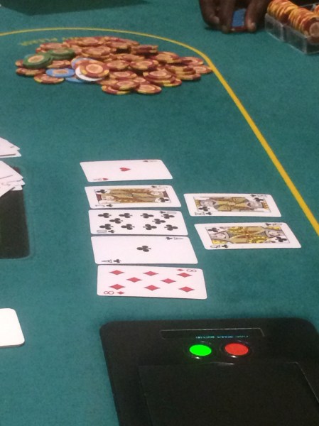 9:06 PM: I’m not even trying to be nice at this point. A new player sat down and asked for an Overs button (I’ve been the only person with one all day) and a couple other players asked for them and threw them back when I said it was $25/$50.