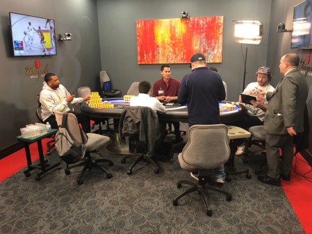 Wayne Chiang and Ronnie Bardah will be doing the commentary. I don’t know much about Wayne, but Ronnie is a LHE legend and also gained lots of attention for cashing the Main Event five years in a row and as far as I know that is still a record. Ronnie was briefly playing $20/$40 with us and said he might be talking a little shit on the broadcast but that it’s all in good fun. Joker ensured him that people have been berating his game for years already.