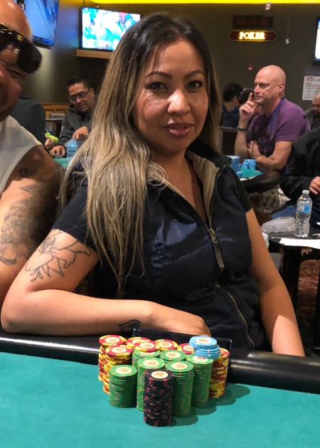 At this point in the night, a new player got in the game and seemed to be quite intoxicated. I called her down in a couple of hands when she was bluffing and suddenly found myself with sugar for the first time about 4.5 hours into the session after being down nearly $1400 at one point.