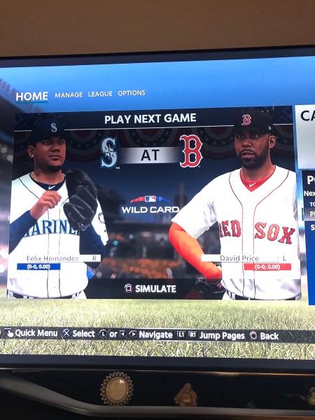 On the bright side, Chris Sale was also on the DL on September 1st and he’s not on the Red Sox roster for the WCG. I’m facing David Price instead.