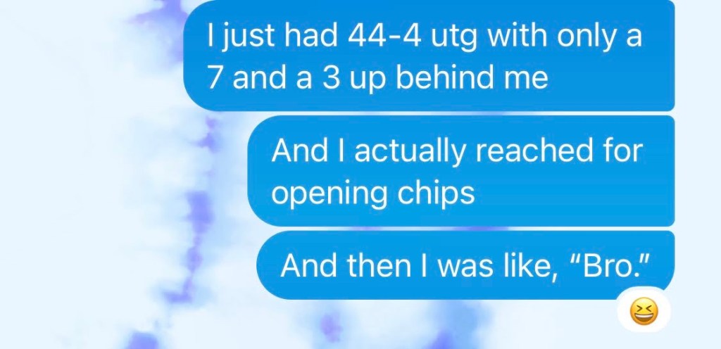 I’ve talked about this hand a lot with my friends and I still can’t explain exactly why I played it the way I did. Sometimes your instincts are going off for a reason. I’ve learned that not trusting my instincts is usually to my own detriment and trusting them in this exact spot absolutely saved my tournament life and allowed me to go on to make the biggest tourney score of my life.