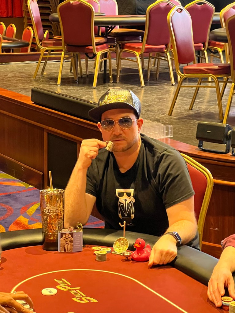 I played an unscheduled event at South Point the next day, a $240 ROSE tournament. I ran up a stack early and felt like I was quite easily the table captain, but the wheels fell off and I ended up busting pretty far from the money.