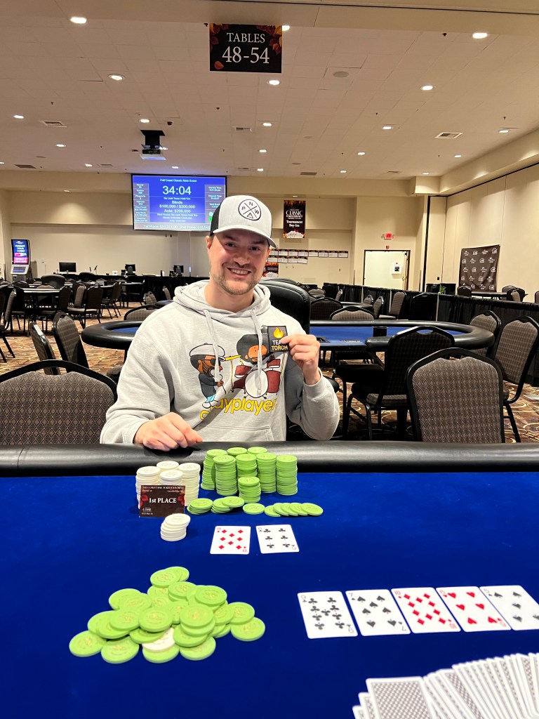 I did cash the $500 Housewarming event, but it was a noteworthy event for another reason: Jared Kingery of Tacoma, WA ended up taking 2nd in it for a mammoth $433k score. I didn’t know Jared when this happened, but I heard that someone that played at Palace took 2nd in this tournament. I’ve been playing with him over the past month and I’m a big fan. He has a solid, friendly table presence, he’s funny, he gambles, and he’s humble. I’ve played with him like three times now and he’s never once brought up this score at the tables. I have a lot of respect for that level of humility. Congrats Jared and keep it up! (Note: Since I first started writing this post, Jared has found his way into our Team Torch chat group).
