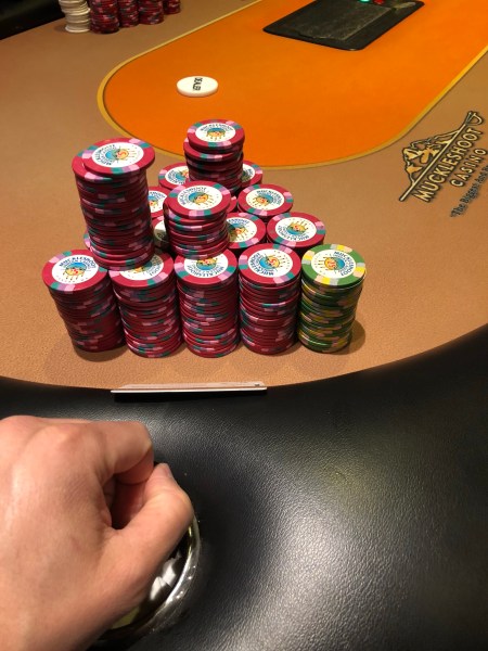 After battling through some brutal traffic – for a Saturday – because of a Kid Rock concert at the White River Ampitheater nearby, I arrived at Muck about 30 after 5 and immediately got a seat in what was previously an 8-handed game.